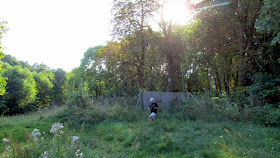 | Zwiedzania "Dinoparku" nie było w planach, poza tym już późno i trzeba się śpieszyć, aby dojechać do Łodzi przed zmrokiem. Jacek buszuje z trawach, chcąc znaleźć dobre miejsce na zrobienia zdjęcia dworu Dobieckich. |