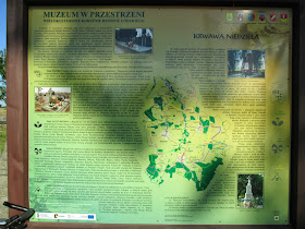 | Przy alei prowadzącej do pomnika, ustawiona jest tablica z informacją na jego temat oraz historią tragicznych wydarzeń z okresu okupacji hitlerowskiej. |