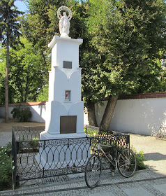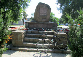 | Oglądamy jeszcze pomnik nagrobny z jasnego granitu, w kształcie modernisty |