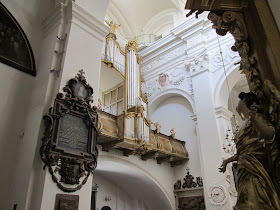 | Chór i organy świątyni oraz epitafium prymasa Andrzeja Olszowskiego. |