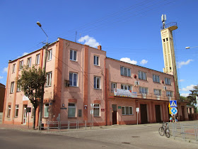 | Dojeżdżamy do skrzyżowania z ul. św. Floriana, gdzie znajduje się remiza Ochotniczej Straży Pożarnej w Łowiczu. |