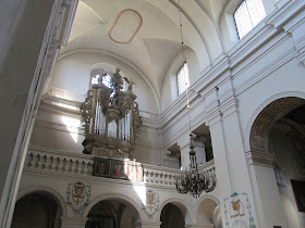 | Prospekt organowy i chór muzyczny kościoła rektorskiego ojców pijarów p.w. Matki Bożej Łaskawej i św. Wojciecha w Łowiczu. |