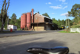 | Po drugiej stronie szosy stoi drewniany młyn wodny z 1906 roku, obecnie posiadający napęd elektryczny. |