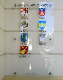| Na zieleńcu przy ogrodzeniu Bazyliki Katedralnej WNMP, ustawiony jest słup z tabliczkami - drogowskaz do miast partnerskich miasta Łowicza. |