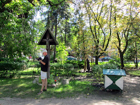 | Kilkadziesiąt metrów za mostem, zatrzymujemy się przy skrzyżowaniu z ul. Chełmońskiego. Na terenie jednej z posesji, ustawiona jest zabytkowa kapliczka z figurką św. Nepomucena. |