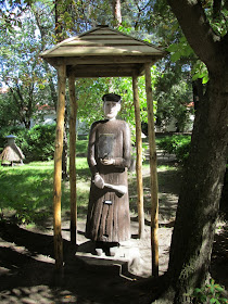 | W każdy weekend od początku czerwca do końca sierpnia w godz. 12-18, przy Muzeum w Łowiczu odbywają się tzw. "Warsztaty Ludowe". Na zdjęciu drewniana figurka św. Nepomucena. |