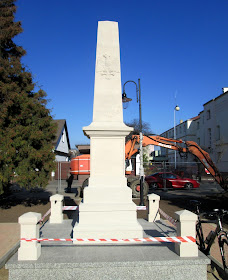 | Pomnik został odsłonięty w 1956 roku i zawierał wówczas piastowskiego orła bez korony i płaskorzeźbę, gdzie na tle laurowych liści były dwa skrzyżowane miecze oraz dwie czapki żołnierskie : rogatywka ludowego wojska polskiego i sowiecka z gwiazdą pięcioramienną oraz napisy "Bohaterom II Wojny Światowej 1939-1945" i "Obywatele M. Konstantynowa 22.VII 1956". Teraz wygląda zupełnie inaczej, niż podczas WYCIECZKI Nr 99 (usunięto haniebną płaskorzeźbę). |