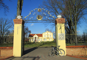 | Szybko dojeżdżam do Piorunowa, pod bramę dawnego pałacu Lucjana Niemyskiego - warszawskiego fabrykanta i jego żony Barbary Niemyskiej. |