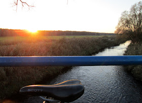 | Za mostem na rzece Pisia, skręcam na wschód i wyjeżdżam z Zygier. Dziś jest rewelacyjna pogoda ! Przez cały dzień pięknie świeci słońce, które za chwilę zafunduje mi swój rewelacyjny zachód. |