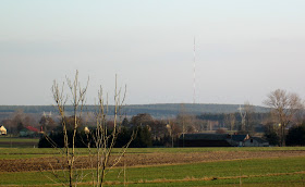 | Patrząc na zachód, widać dobrze wieżę kościoła w Małyniu i oczywiście maszt w Zygrach. |