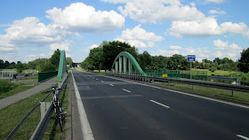 | Po chwili dojeżdżam do mostu na rzece Słudwia, przy którym znajduje się pierwszy na świecie drogowy most spawany. |