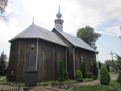 Ruszam dalej i stanowczo za późno, zajeżdżam pod zabytkowy kościół p.w. św. Wacława w Głuchowie, który wzniesiono w 1786 roku (zobacz WYCIECZKA Nr 119). Zakończyło się świąteczne nabożeństwo i tłum ludzi opuścił mury świątyni. Nie zdążyłem niestety wejść do środka, aby zrobić kilka zdjęć... Ale tak to jest, jak człowiek dostanie się pod zły wpływ OBCYCH... |