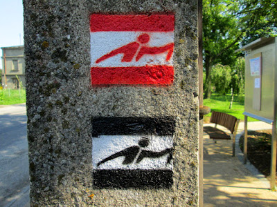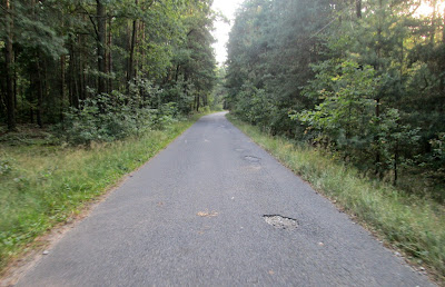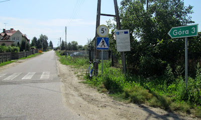 Kieruję się drogą na południe, po której przebiegają oznakowane szlaki rowerowe : niebieski i czarny. |