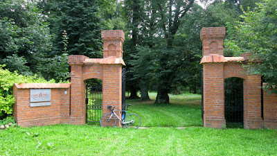 Szybko zajeżdżam pod ceglaną bramę, która prowadzi na teren parku podworskiego. Park został zaprojektowany w stylu angielskim. Powstał w 1926 roku według projektu Stefana Celichowskiego. |