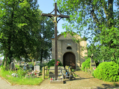 Po dojechaniu do kościoła p.w. Świętych Apostołów Tomasza i Judy Tadeusza, skręcam na zachód i kieruję się do cmentarza parafialnego w Starej Rawie. |
