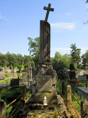 Wracam jeszcze pod duży grobowiec Rodziny Poltew, na którym stoi pomnik w kształcie ułamanej kolumny. |