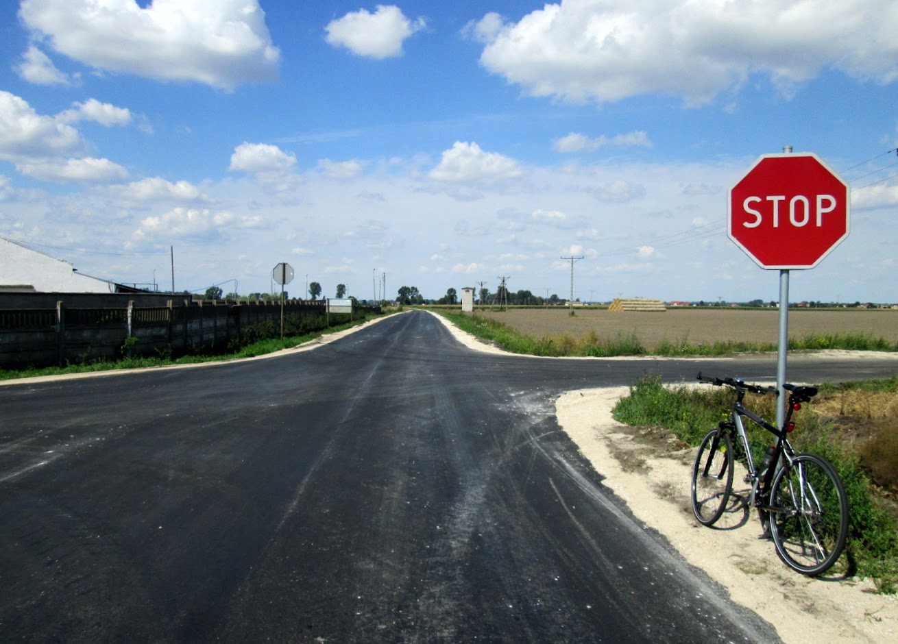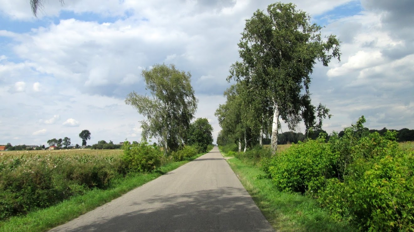 Na skrzyżowaniu przed Leśmierzem, wyjeżdżam na nową warstwę asfaltu. Ale jadę po niej bardzo krótko, bo zaraz skręcam na północ w wąską szosę prowadzącą do Tumu.