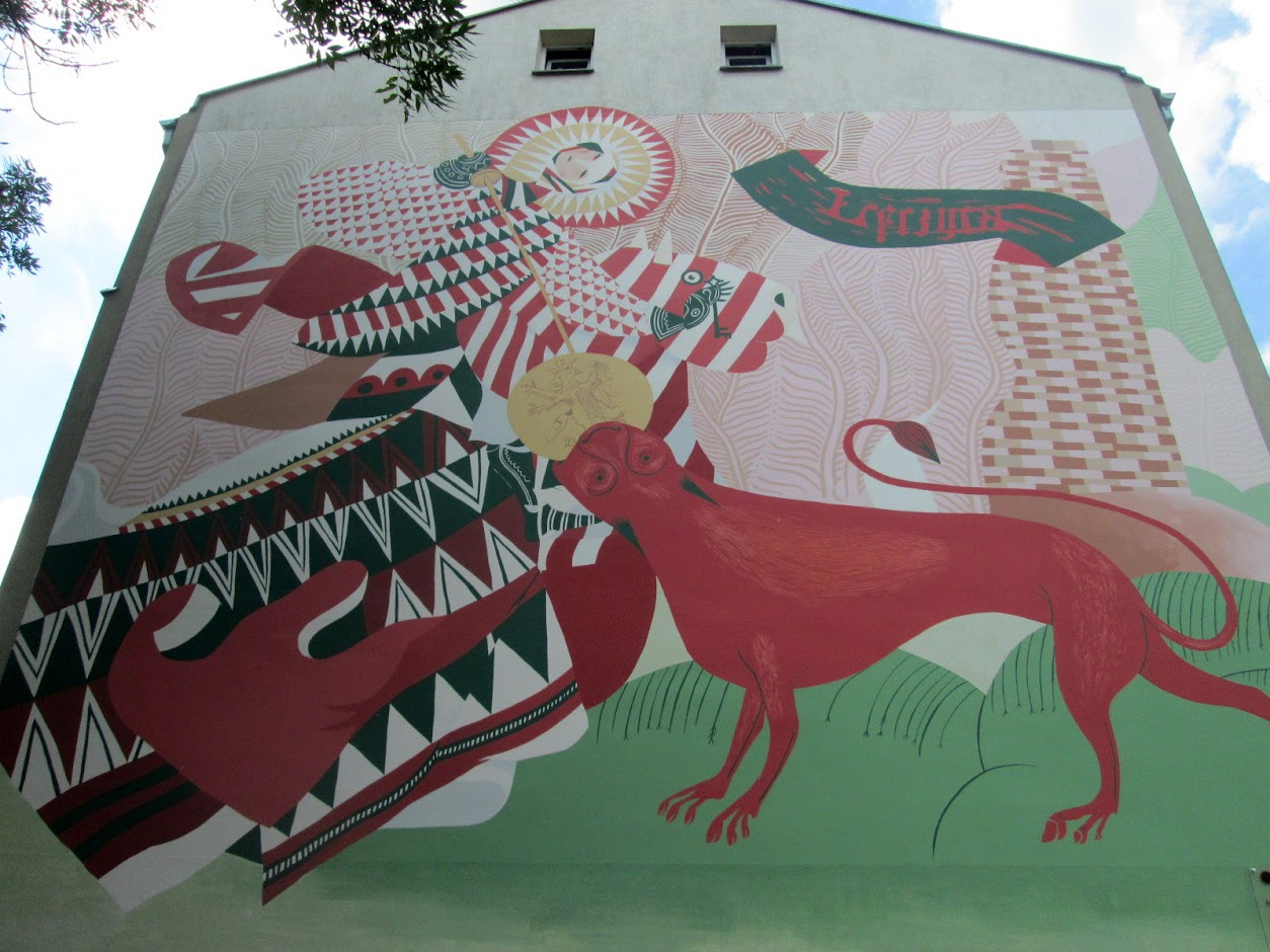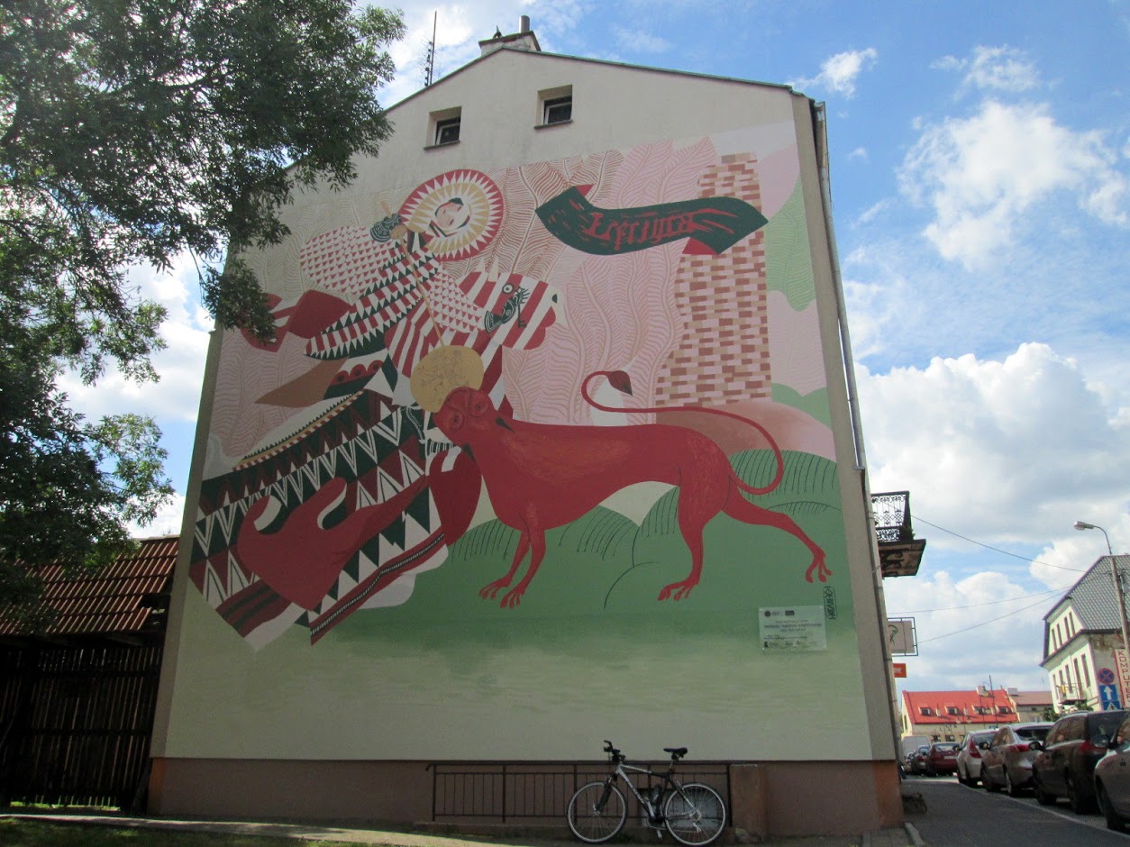 Po dojechaniu do DW nr 713 skręcam w lewo i pedałuję do Łęczycy. Wjeżdżam wprost na ul. 18 Stycznia, gdzie na ścianie kamienicy znajduje się wspaniały mural.