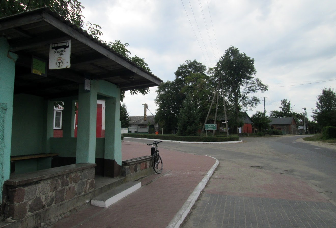 Stoi tam wiata przystanku autobusowego. Taki niepozorny obiekt, ale na wypadek padającego deszczu, zawsze się może przydać rowerzyście !