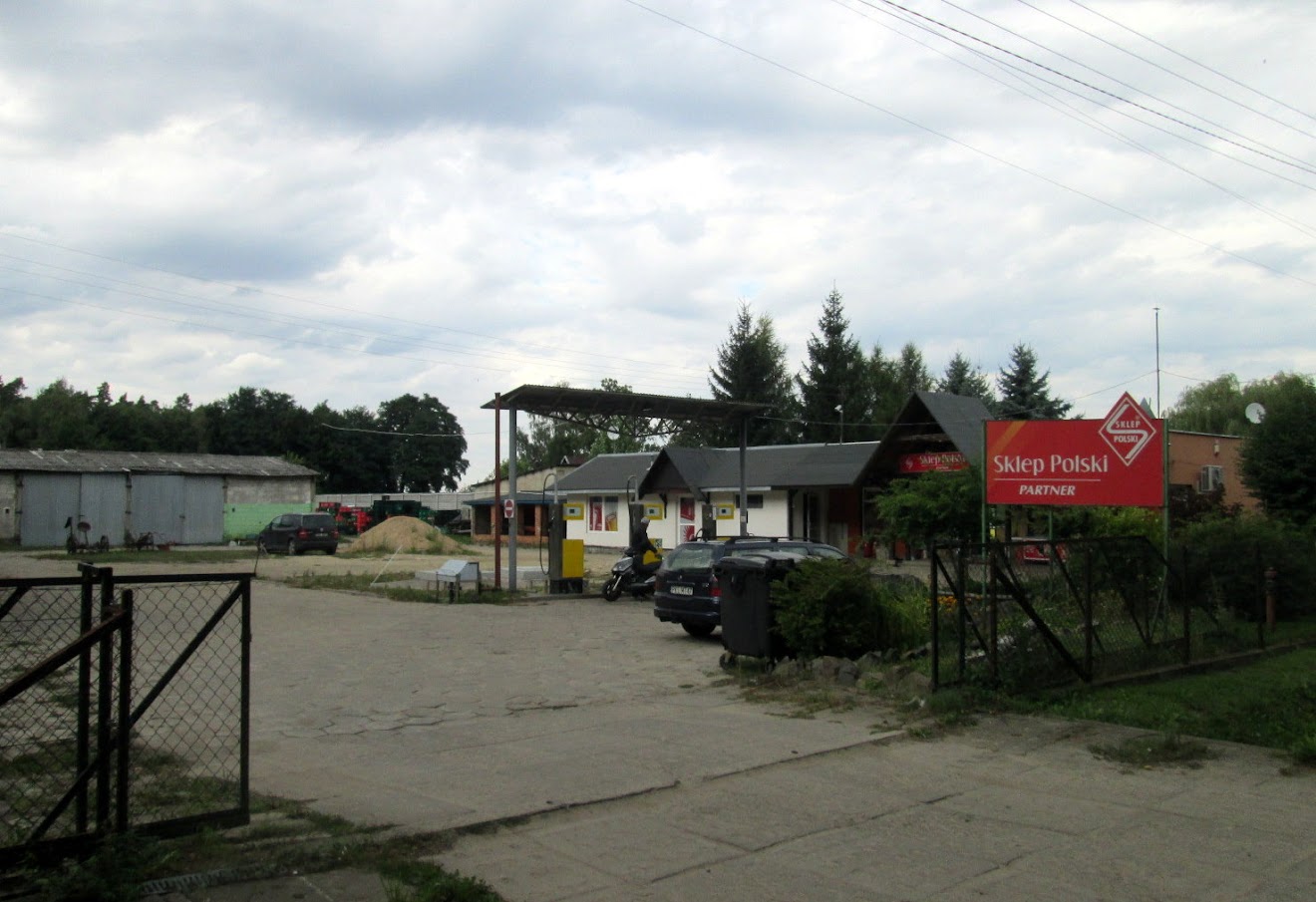 Jadę dalej na południe, mijając plac ze stacją paliw i "Sklepem Polskim".
