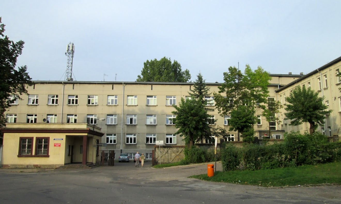 Do odjazdu pociągu zostało mi trochę czasu, więc jeżdżę po mieście w poszukiwaniu ważnych obiektów. Podjeżdżam pod Szpital Wojewódzki w Sieradzu.