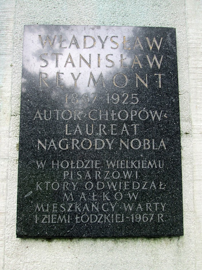 Znajduje się na niej inskrypcja o treści "Władysław Stanisław Reymont 1867-1925 autor Chłopów - Laureat Nagrody Nobla. W hołdzie wielkiemu pisarzowi, który odwiedzał Małków Mieszkańcy Warty i Ziemi Łódzkiej - 1967 r