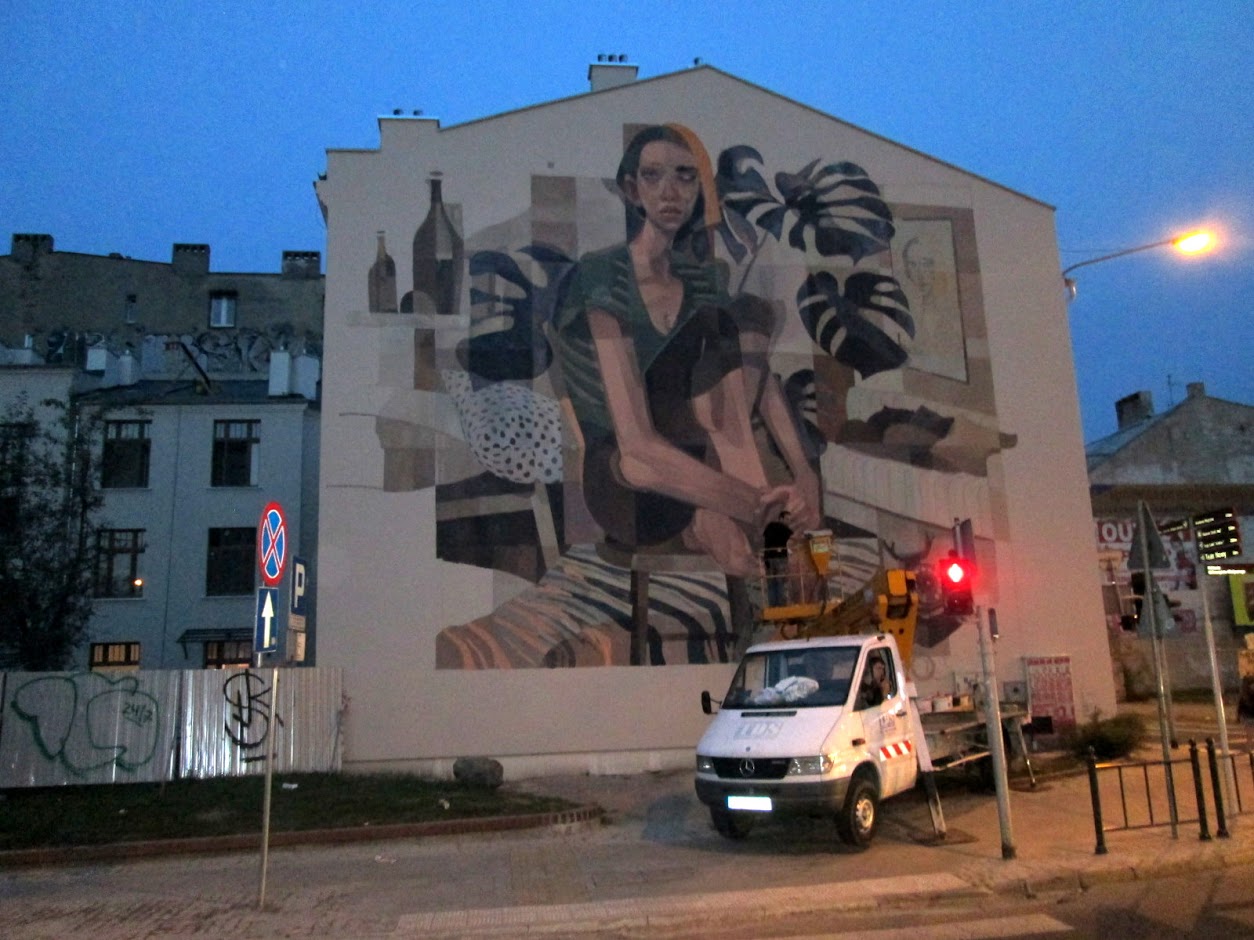 Zaczynam w śródmieściu miasta, przy skrzyżowaniu ul. Zachodniej i ul. Więckowskiego z ważnego powodu. Otóż na ścianie kamienicy przy ul. Więckowskiego 9, wyłania się kolejny już - 31. mural z Galerii Fundacji Urbans Forms.