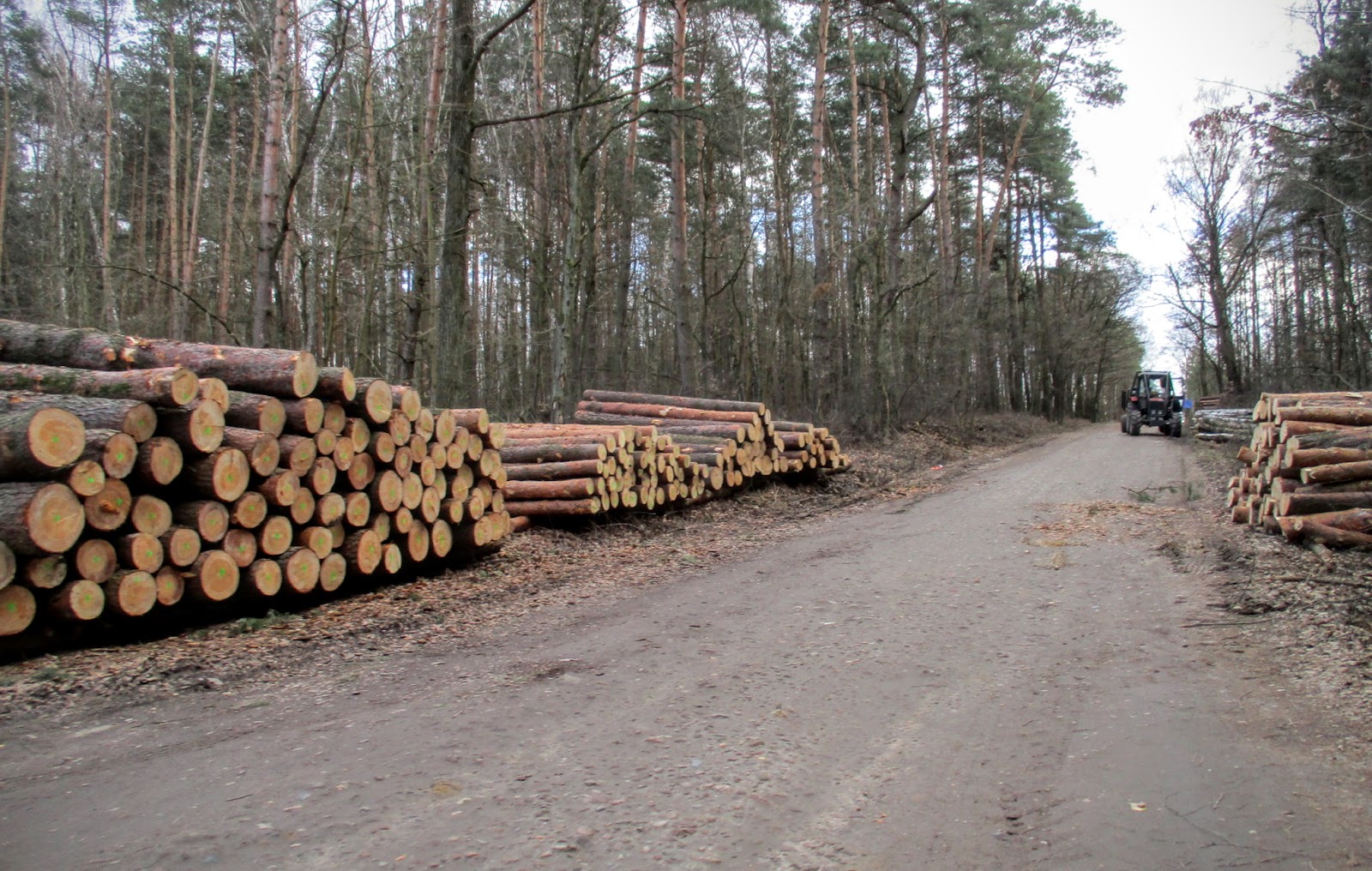 Wyjeżdżam na leśny dukt, który prowadzi przez kompleks leśny na granicy Tadzina i wsi Grzmiąca.