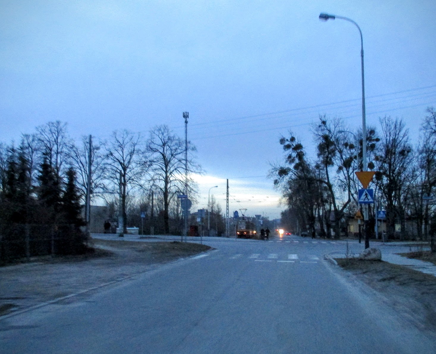 Zmierzch szybko zapada i większość zdjęć, które zrobiłem na tej części szlaku, nadaje się tylko do kosza... Omijając spore kałuże, dojeżdżam do skrzyżowania z ul. Brylantową. Skręcam w prawo w ul. Łupkową.