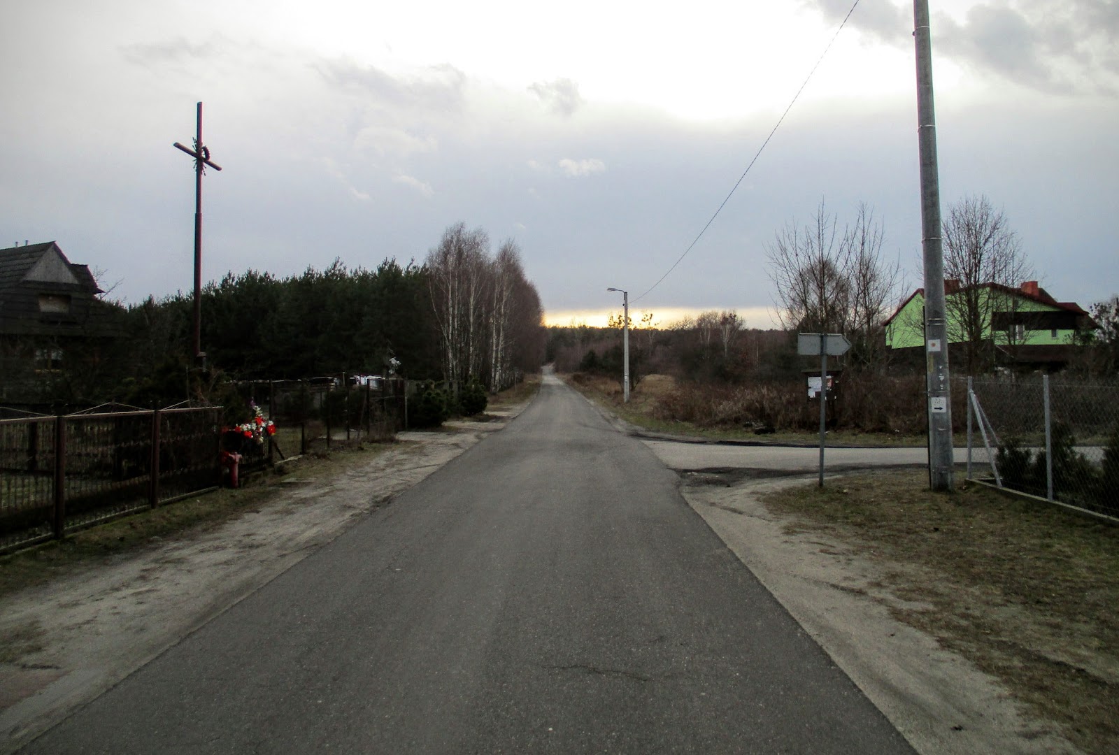 Po dojechaniu do żelaznego krzyża, skręcam w prawo do nowszej części wsi.