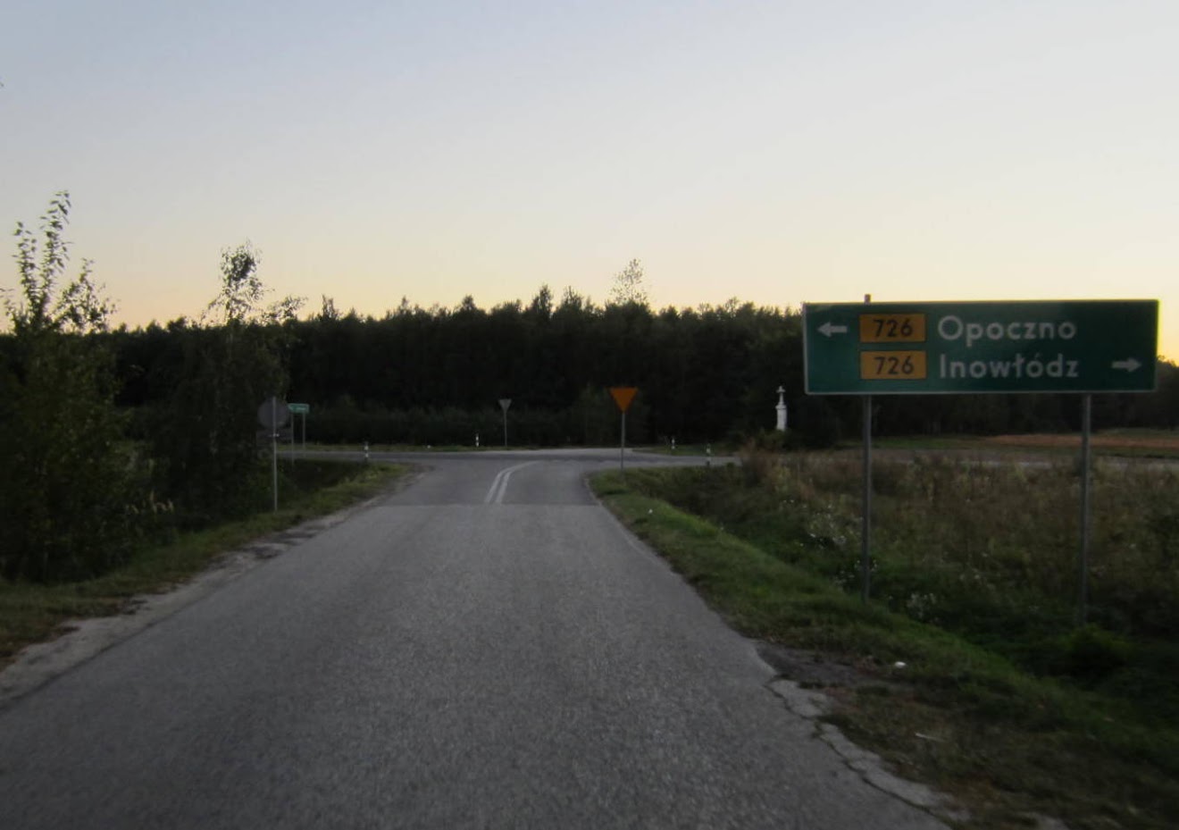Z Inowłodza jadę do Fryszerki. Po chwili wjeżdżam na obszar powiatu opoczyńskiego i gminy Poświętne.