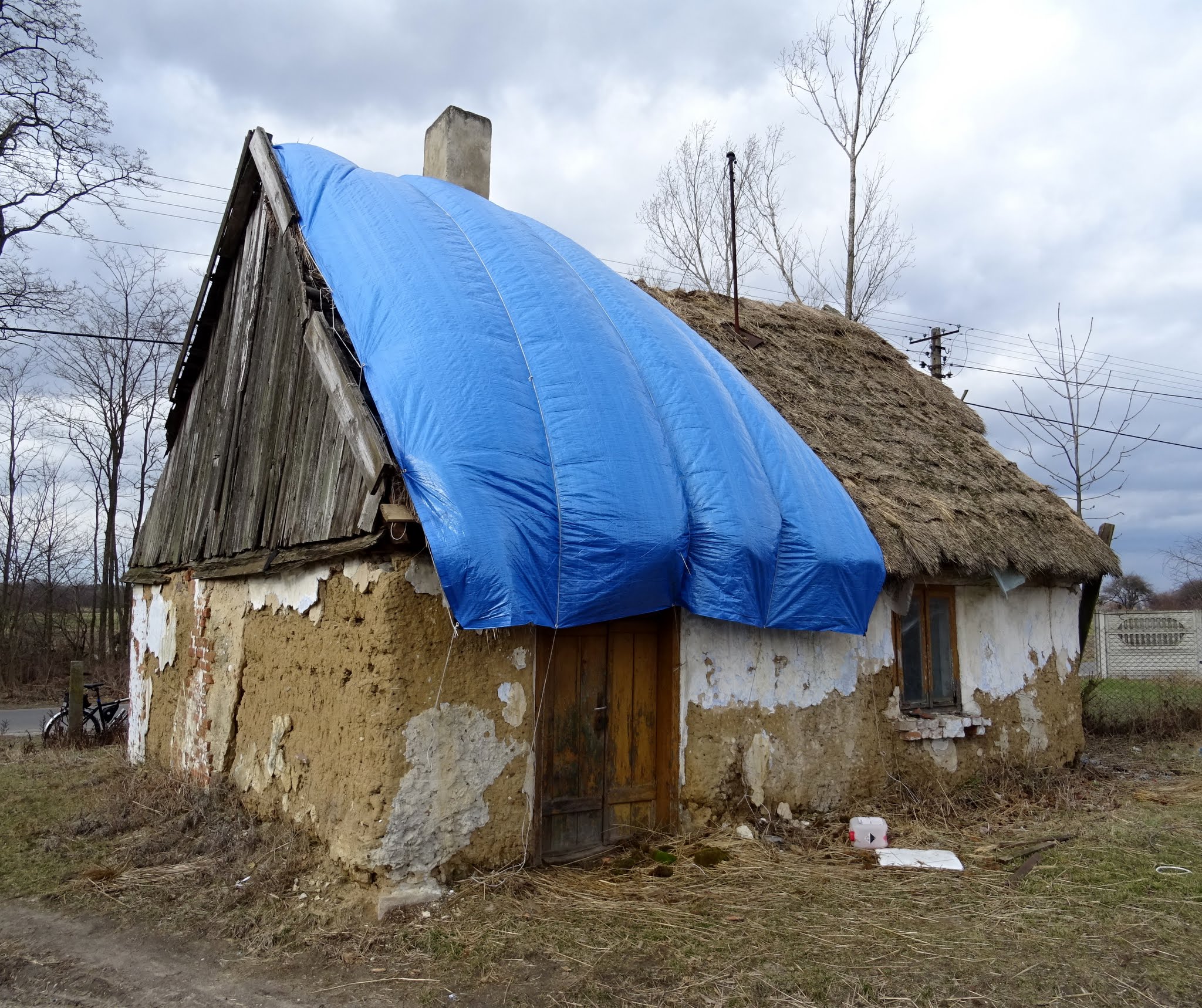 Potem jadę do wsi Borki Prusinowskie. Na posesji nr 8a stoi jeszcze chałupa kryta strzechą. |