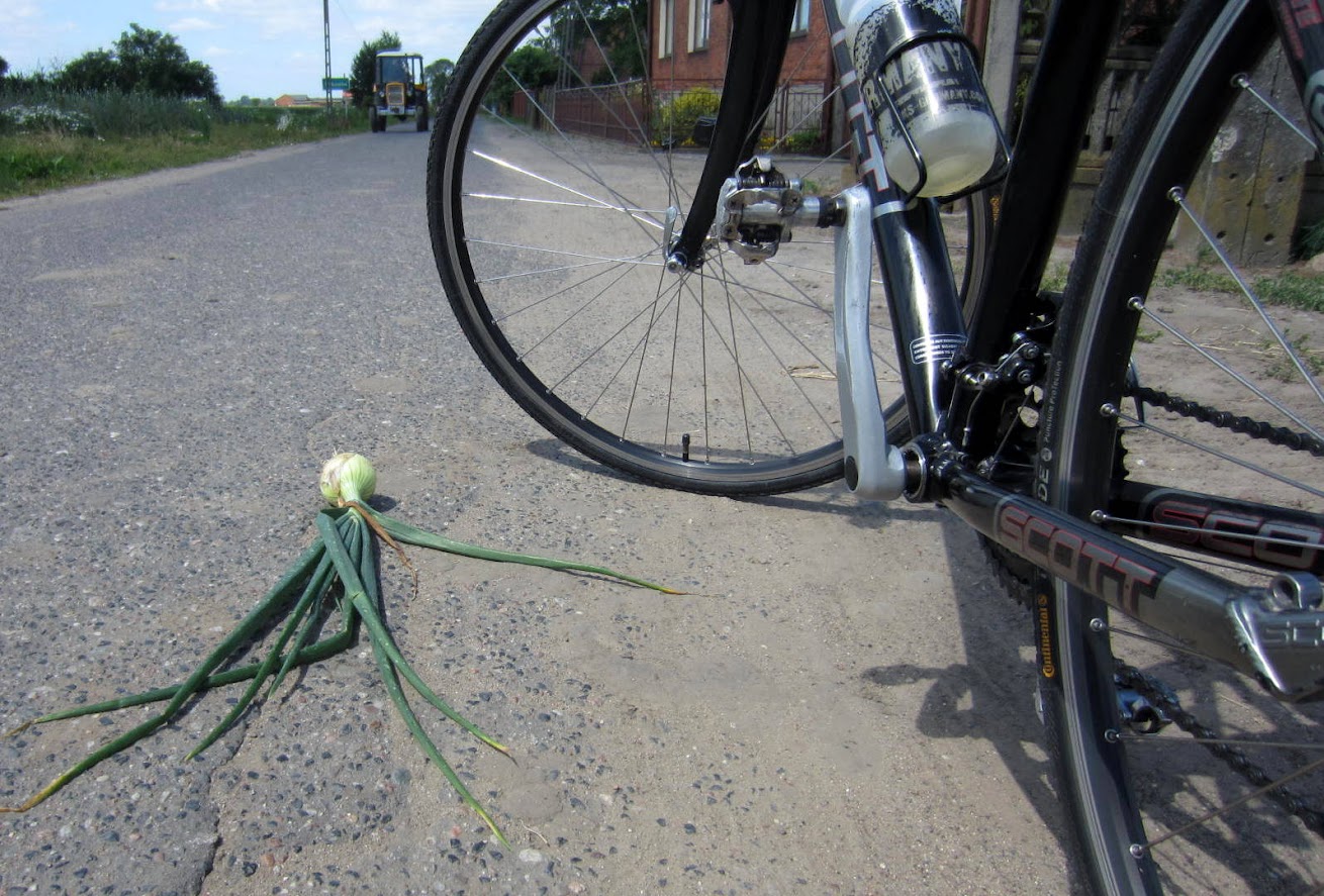 | We wsi Dybówka znajduję leżącą na jezdni wiązkę cebuli ze szczypiorem. Czyli to w 100% prawda, że gdy człowiek o czymś intensywnie myśli, to może się taka rzecz zmaterializować ! |