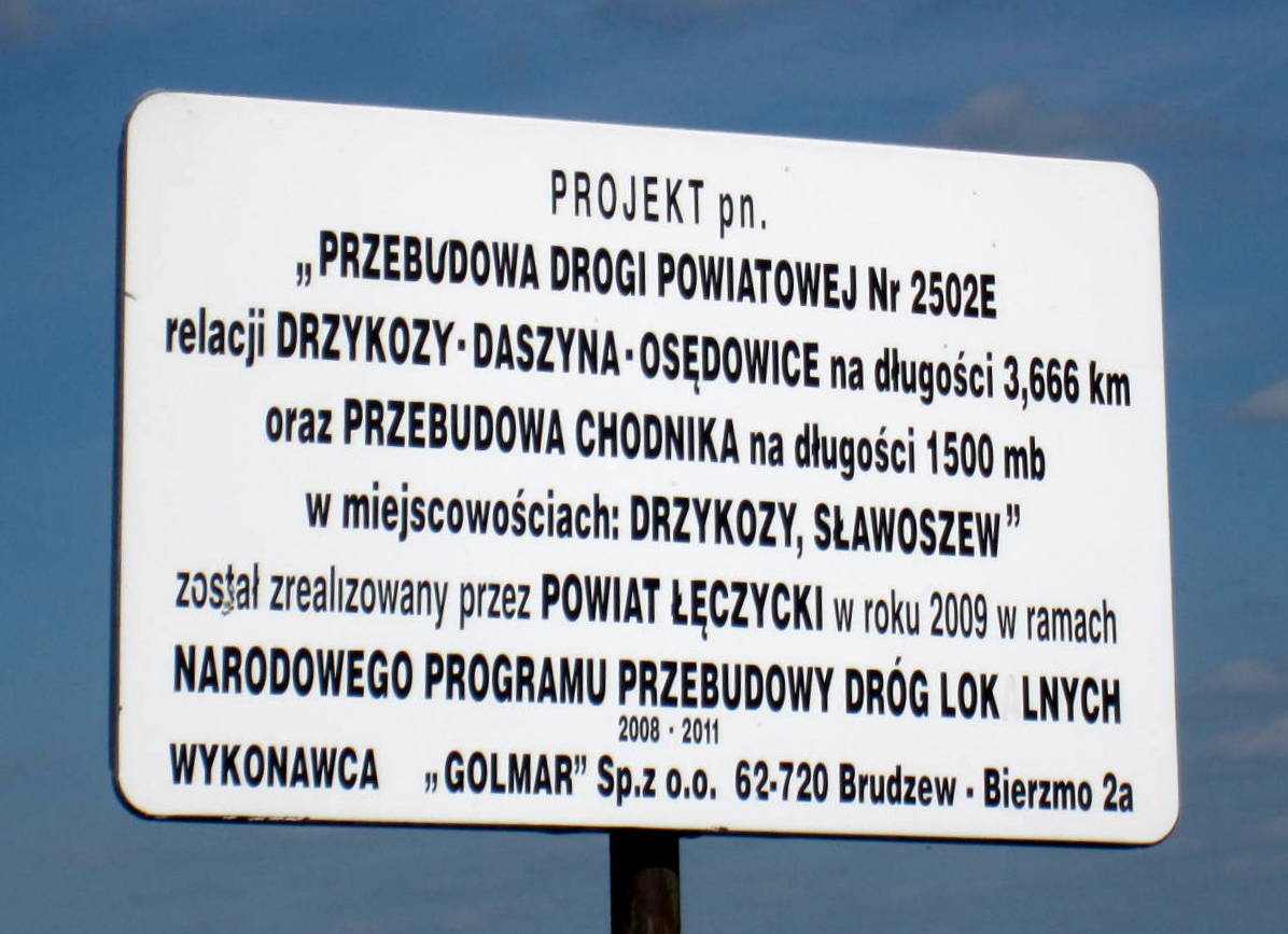 | Jest to droga powiatowa nr 2502E relacji Drzykozy-Daszyna, którą wyremontowano w 2009 roku w ramach "Narodowego programu przebudowy dróg lokalnych 2008-2011". |
