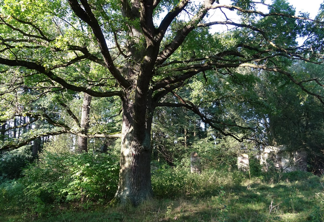 | W szarbskim lesie rośnie potężny dąb szypułkowy, który liczy sobie ok. 200 lat. |